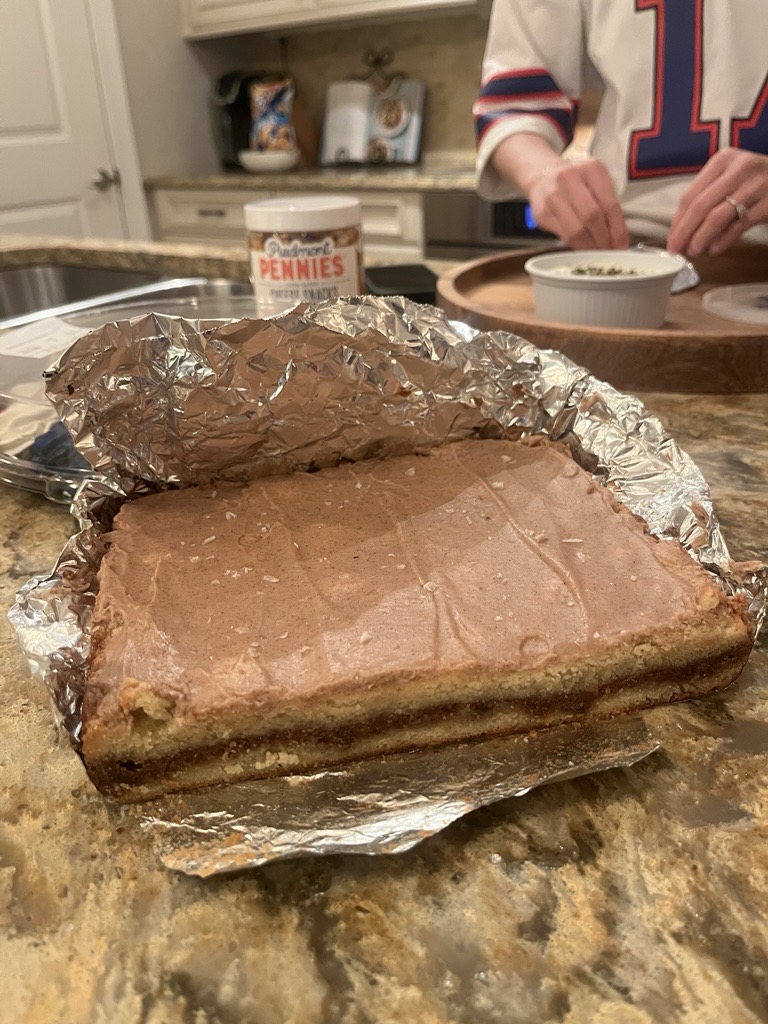 The parchment paper outline and transferring that top layer to the pan was actually fairly easy. The dough was super sticky, though, so it was hard to spread it evenly in the pan. I didn’t have an offset spatula, though.