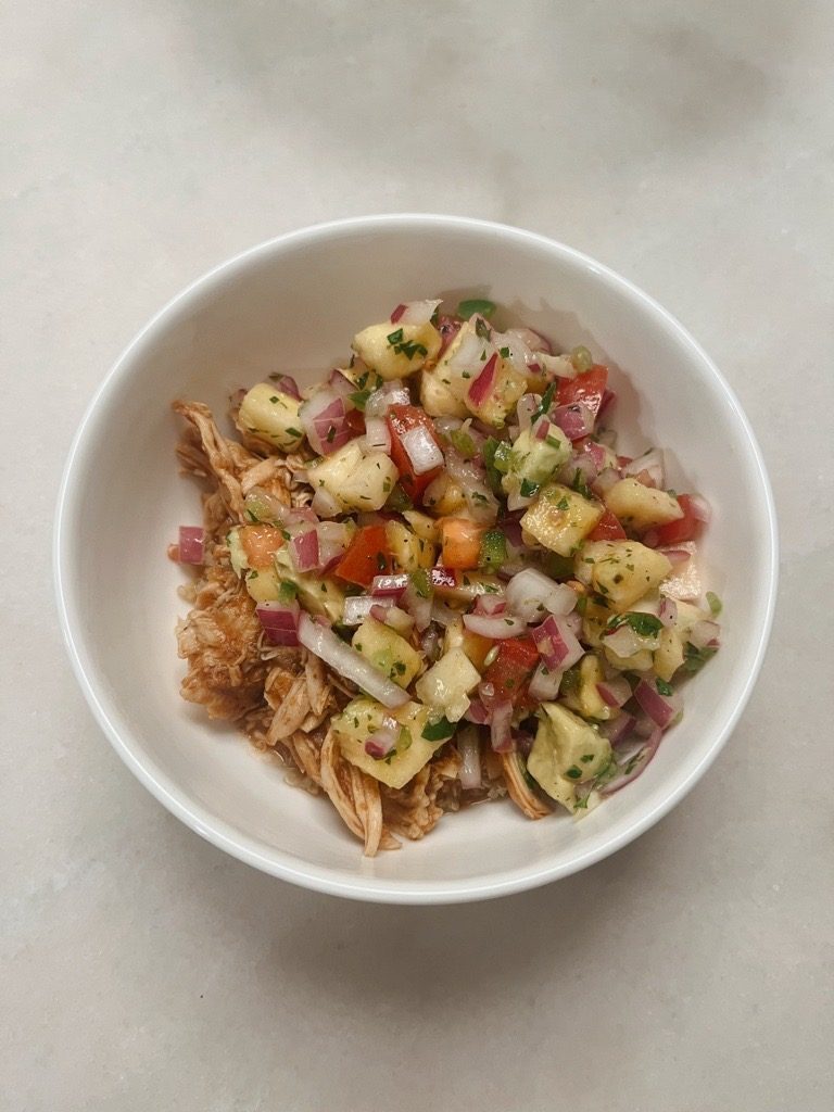 - When the chicken is done, shred with two forks. It should shred easily, or it is not done yet.