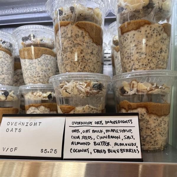 - Toppings: shaved almonds, coconut flakes, dried blueberries