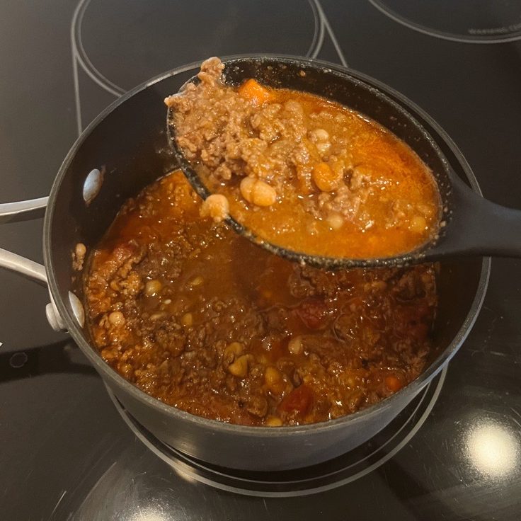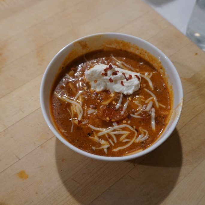 Easy, high protein, not too many ingredients, wholesome and comforting. Keep on hand to whip up when you’re craving an uncomplicated bowl of chili.
