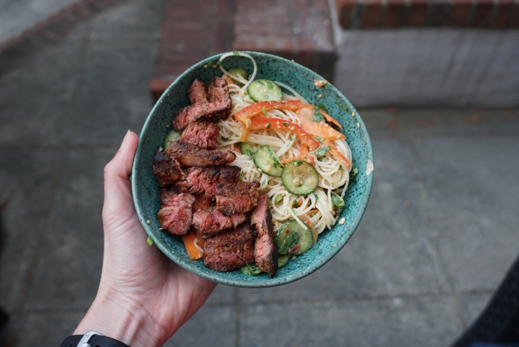 Made April 20, 2026. This makes for great meal prep (why I love Violet’s recipes on Substack). I only had access to ribeye, which was an OK substitute but not the best texture paired with the crunchy veggies. You really want something lean and flavorful here. This was not spicy at all, but it’s all about the red curry paste you buy. Next time, I’ll buy Pataks from an Indian specialty store or Mae Ploy on Amazon. I used all of the dressing and it was the perfect amount to thinly coat everything, but next time I’ll add sub a Tbsp of avocado oil for peanut butter and use water, soy sauce, or more rice vinegar to thin it out. It didn’t have a strong flavor and was more thin than creamy. Lastly, I used a mandoline to thinly slice the veggies, but I should have shaved the carrots. They were a bit too crunchy and hard to eat with the noodles.